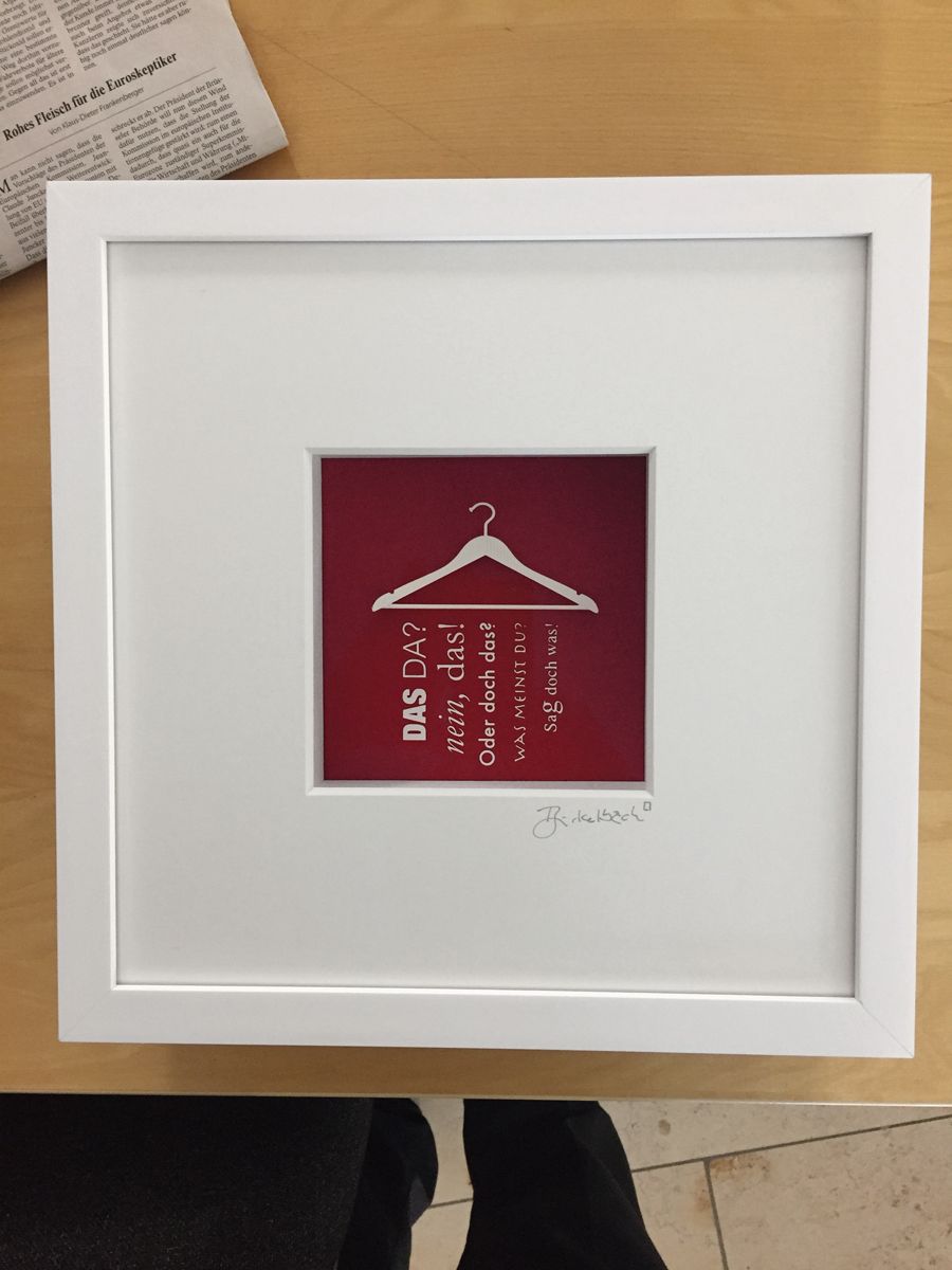 Die Exponate aus der Serie „Schöne Momente“ bestehen im wesentlichen aus fünf Bestandteilen: einem Objektkasten mit Hintergrundplatte aus Leinen-Kappa (1), einem dreidimensionalem Objektgegenstand (2), einem aufgeklebtem Passpartout (3) und einer Abdeckung durch eine fast blendfreie Verglasung (4) sowie einem hochwertigem Holz-Bilderrahmen (5). Die 3D-Objektgegenstände werden von Designern und CAD-Spezialisten nach Vorgabe entwickelt und mit modernsten 3D-Druckern erzeugt bzw. gefräst oder laser-gecutttet. Weitere dreidimensionale Gestaltungselemente ergänzen die Wort-Bild-Collagen. Die einzelnen Produktbestandteile werden kunsthandwerklich zusammengefügt und können daher leicht von der Darstellung im Katalog abweichen. Auf der Rückseite des Exponates ist ein Zertifikat angebracht, dass die Echtheit bestätigt und die Seriennummer ausweist. Es ist vom Künstler unterschrieben.