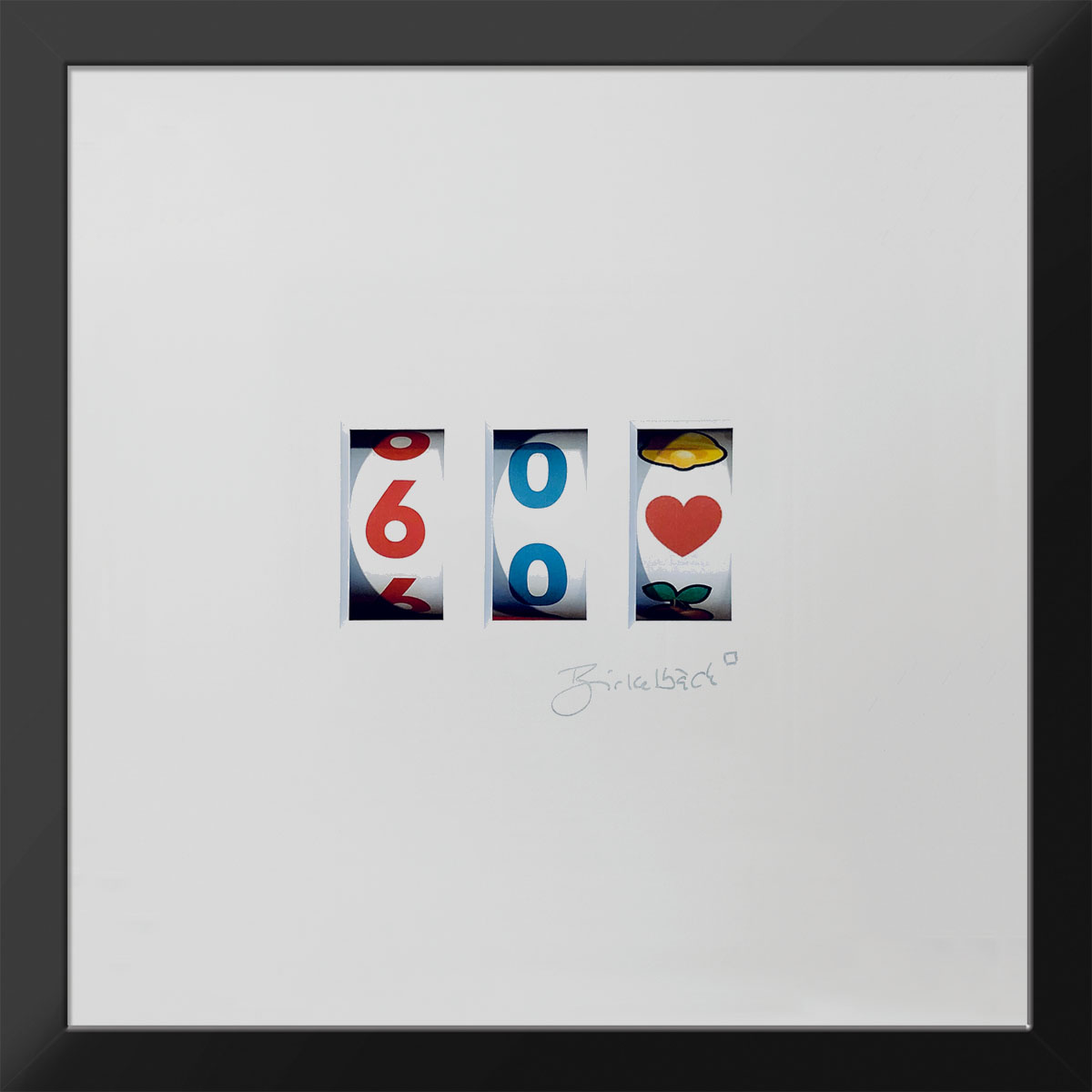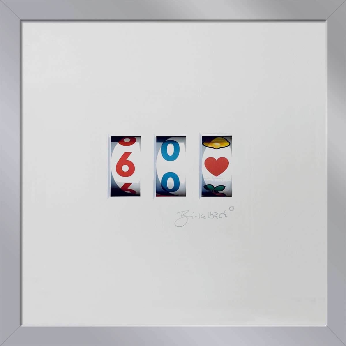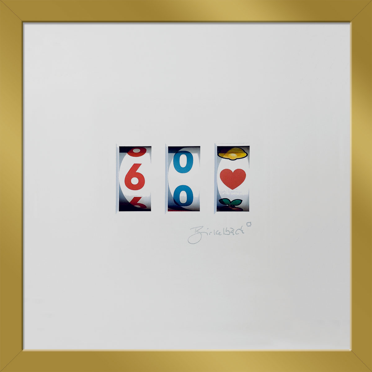Ein nächstes Lebensjahr zu erreichen, ist ein Glücksfall, ein runder Geburtstag umso mehr. Das Lebensjahr – vom Künstler abgebildet auf einem einarmigen Banditen. Und wer genau hinschaut: Einer, bei dem man garantiert nicht älter wird. Gibt es ein schöneres Geburtstagsgeschenk? Das Motiv kann für jeden runden Geburtstag (25, 30, 35, 40…99) angefertigt werden.