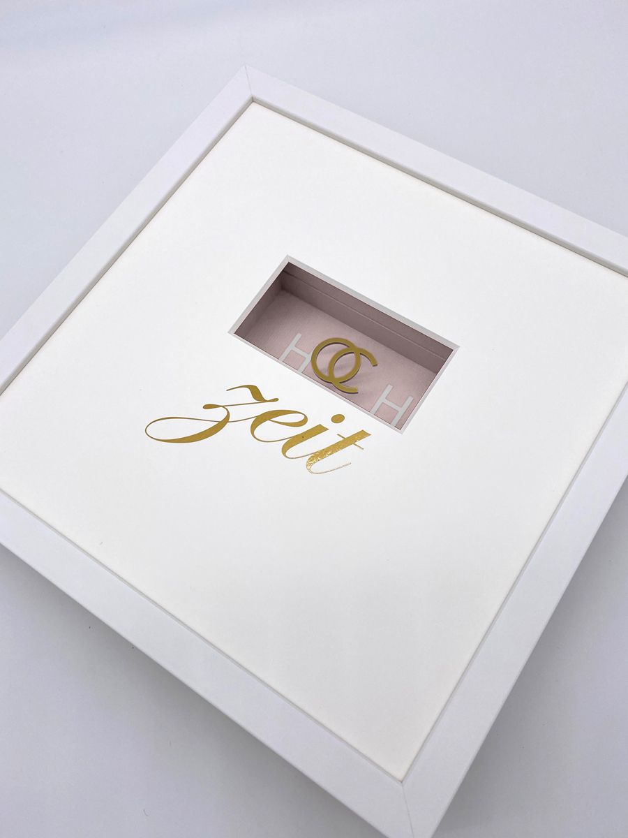 Es ist der schönste Tag des Jahres: Zwei Ringe werden getauscht und die Ehe geschlossen. Ein ebenso schlichtes wie schönes Geschenk für die Brautleute. Die dreidimensional aufbereiteten Eheringe sind in Anlehnung an die Typographie von Chanel gestaltet. Sie schweben auf einer unsichtbaren Glasplatte sind und sogar vergoldet. Das ultimative Geschenk zur Hochzeit.