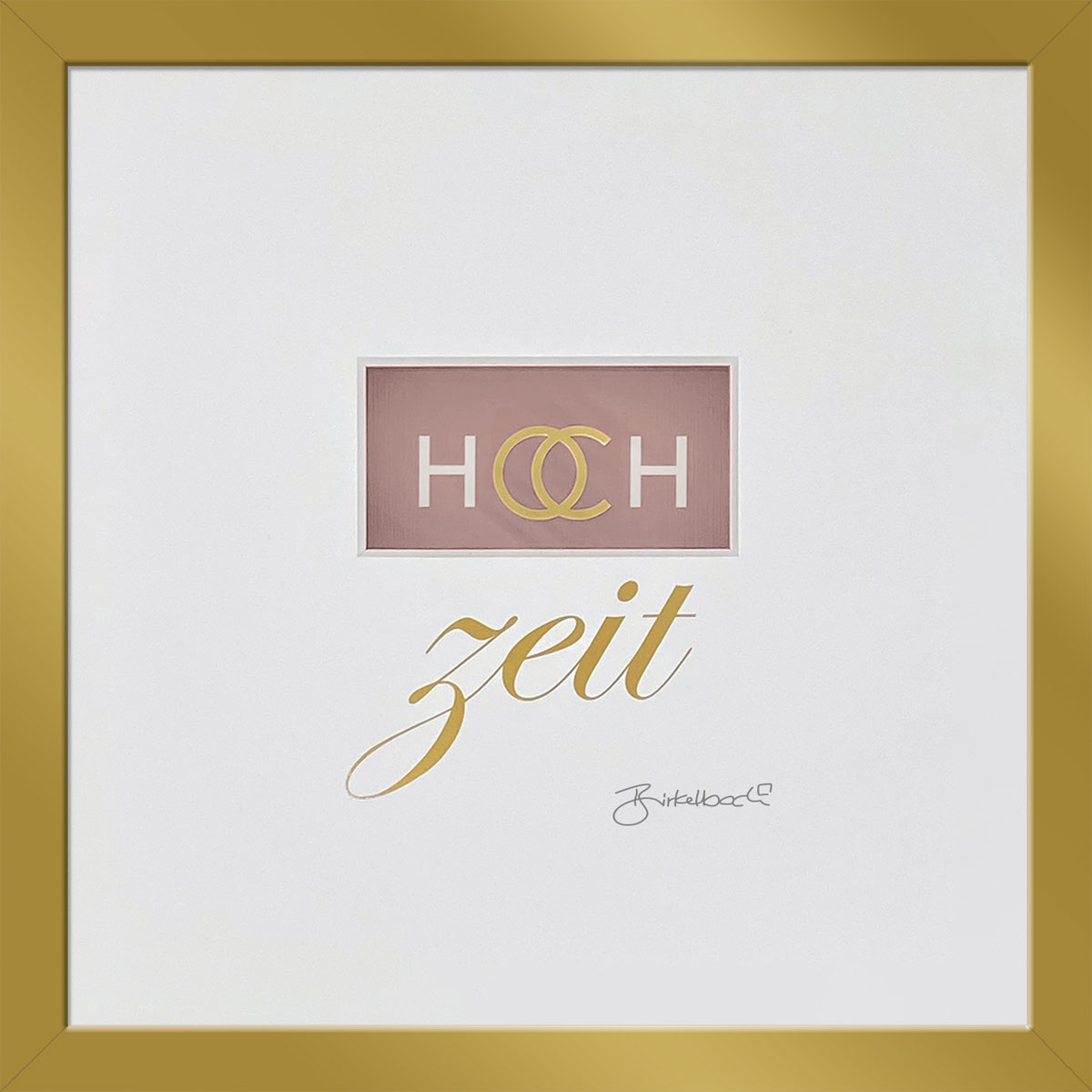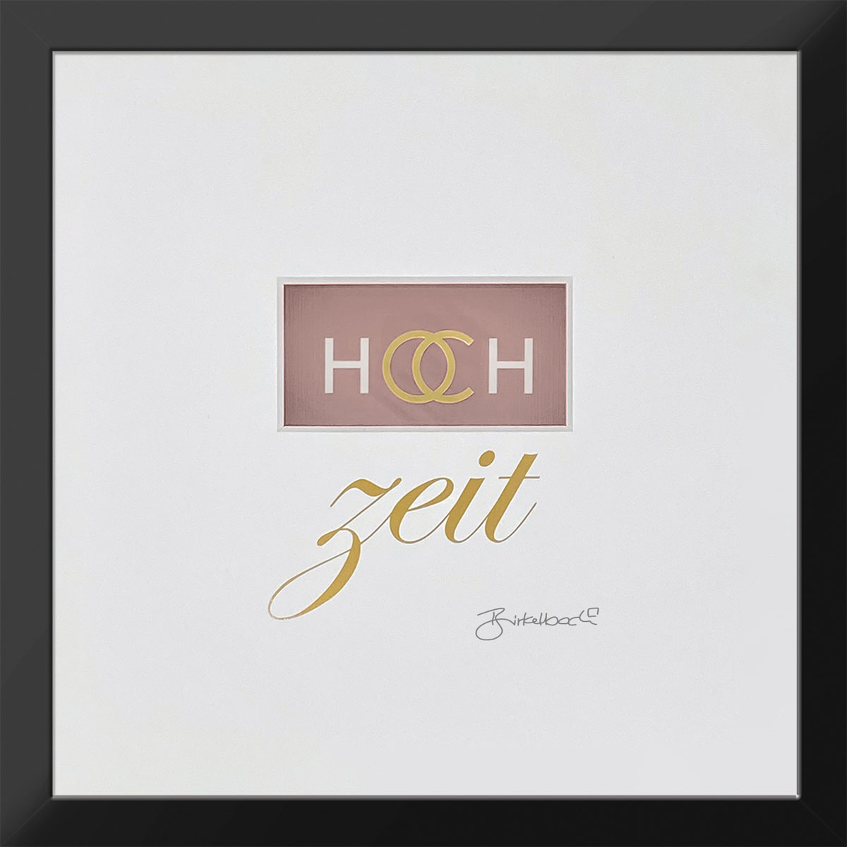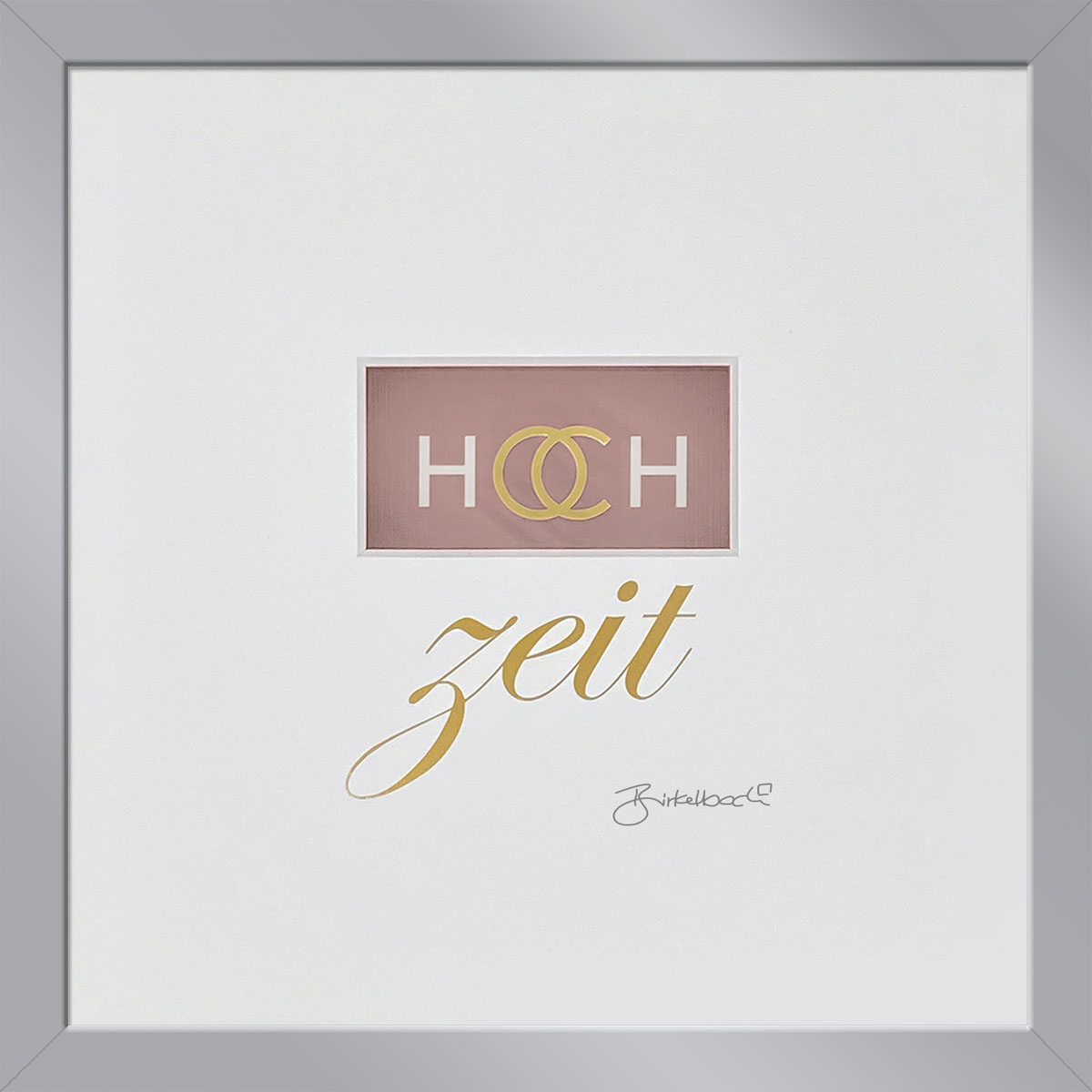 Dies schöne Hochzeitsbild gibt es auch mit der persönlichen Daten des Hochzeitspaares. Die Vornamen von Braut und Bräutigam werden in der Schrift Bank Gothic gestürzt auf dem Passeportout rechtsseitig aufgebracht.