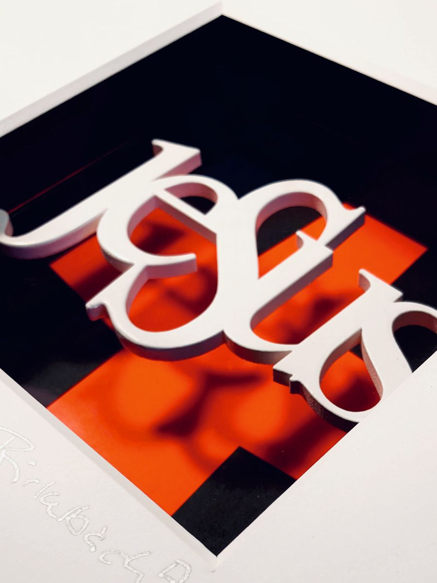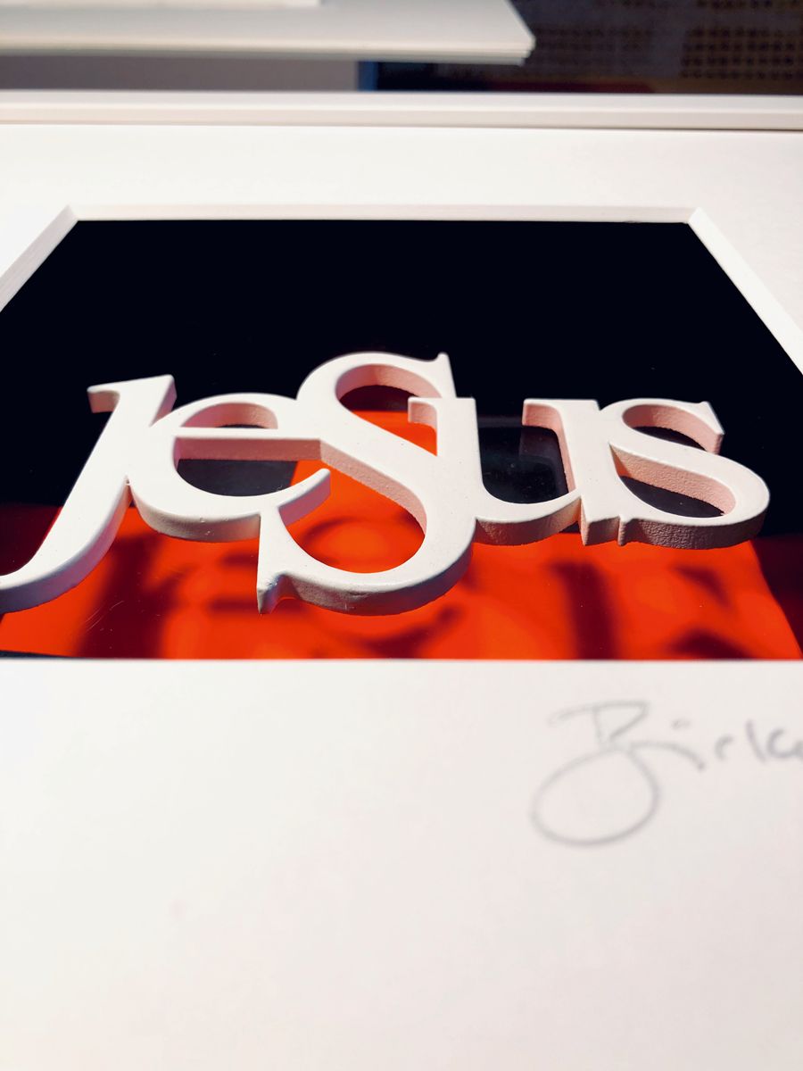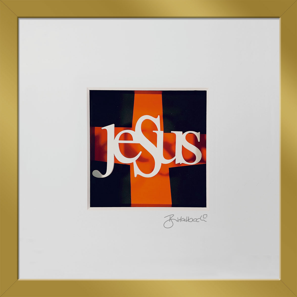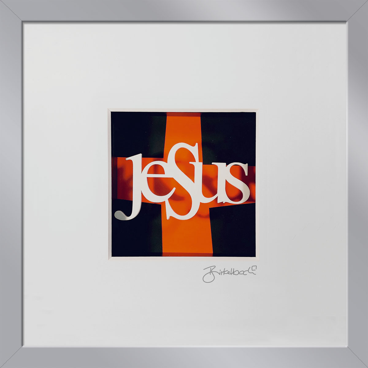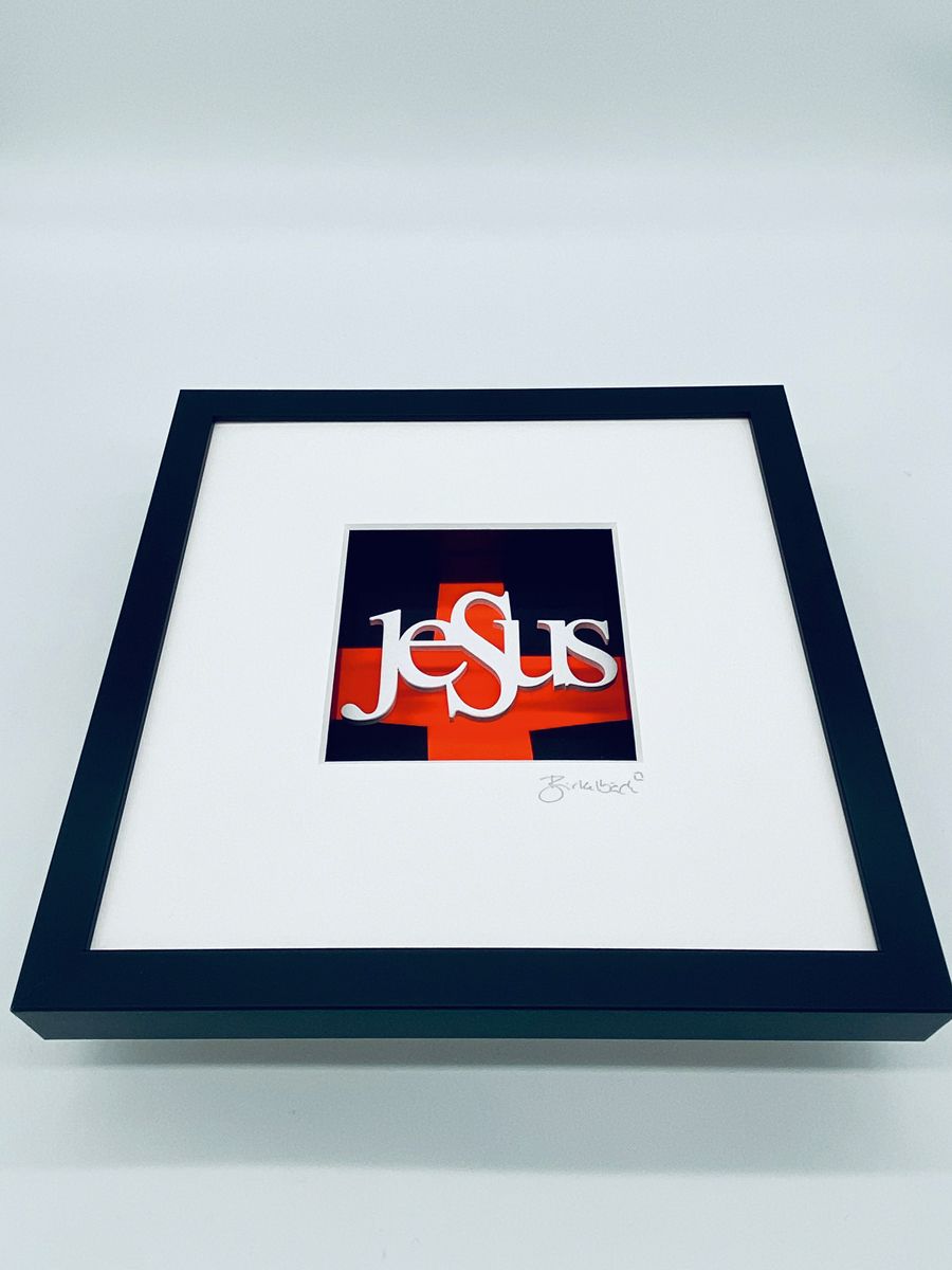 Jesus am Kreuz. Wie viele Künstler haben sich mit Gestaltung des Kruzifixes beschäftigt? Hier ist eine moderne und puristische Gestaltung umgesetzt. Dazu wurde der dreidimensionale Schriftzug von Jesus von Nazareth auf einer Glasscheibe schwebend über ein fluoreszierendes Kreuz gelegt. Ein Geschenk für jeden gläubigen Design-Liebhaber.