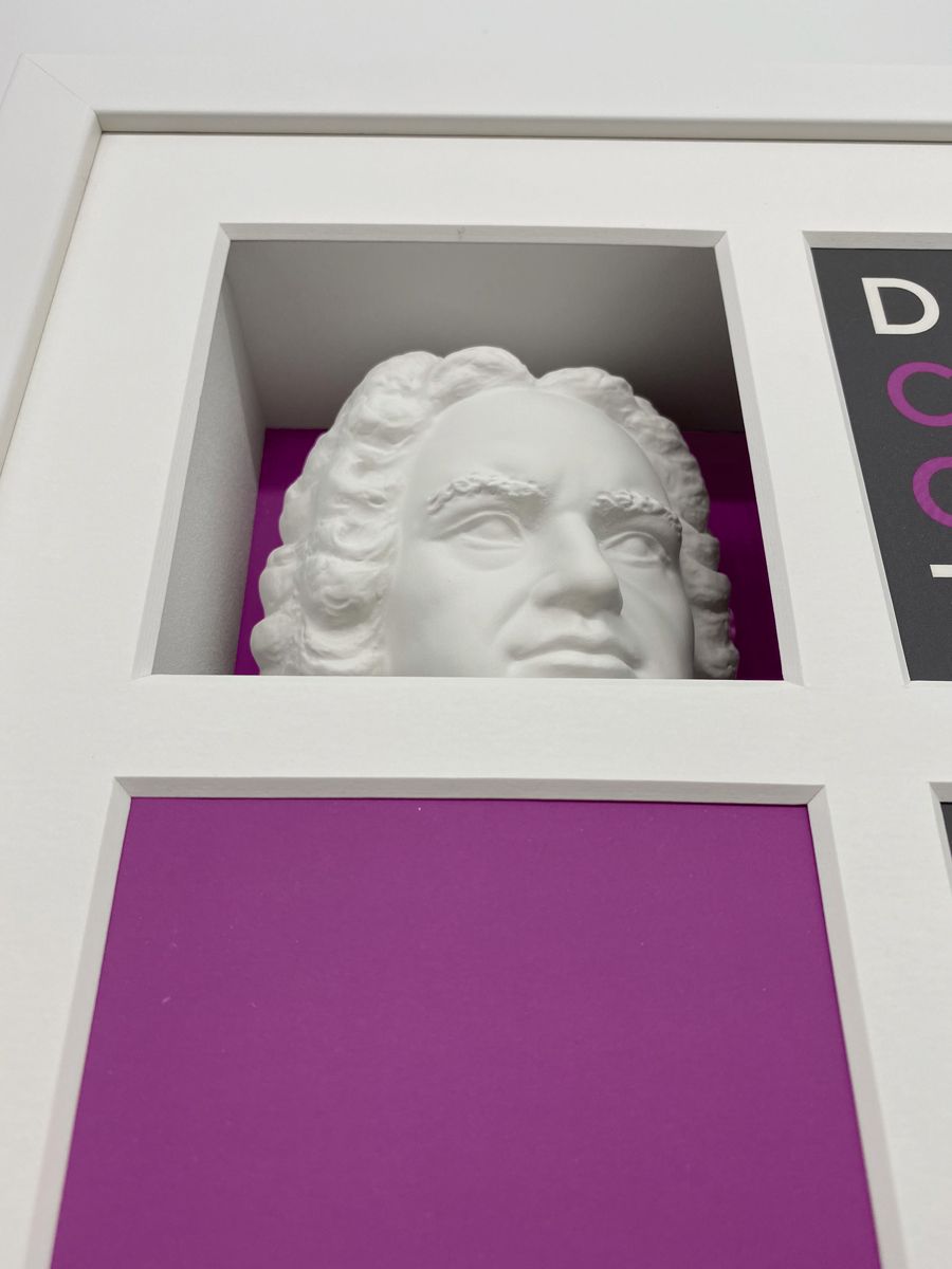 Die Exponate aus der Serie Büstenbilder bestehen im wesentlichen aus fünf Bestandteilen: einem Objektkasten mit eingesetzter 3D-Gipsbüste (1), einem aufgelegtem Digitalkarton (2), einem vierfach gestanztem Passpartout (3), einer blendfreien Verglasung (4) und einem hochwertigen Holz-Bilderrahmen (5). Die einzelnen Produktbestandteile werden kunsthandwerklich zusammengefügt nachdem die Büsten vor dem Einsetzen individuell geschliffen wurden. Daher können die Exponate leicht von der Darstellung im Katalog abweichen. Auf der Rückseite des Exponates ist ein Zertifikat angebracht, dass die Echtheit bestätigt und die Seriennummer ausweist. Es ist vom Künstler unterschrieben.