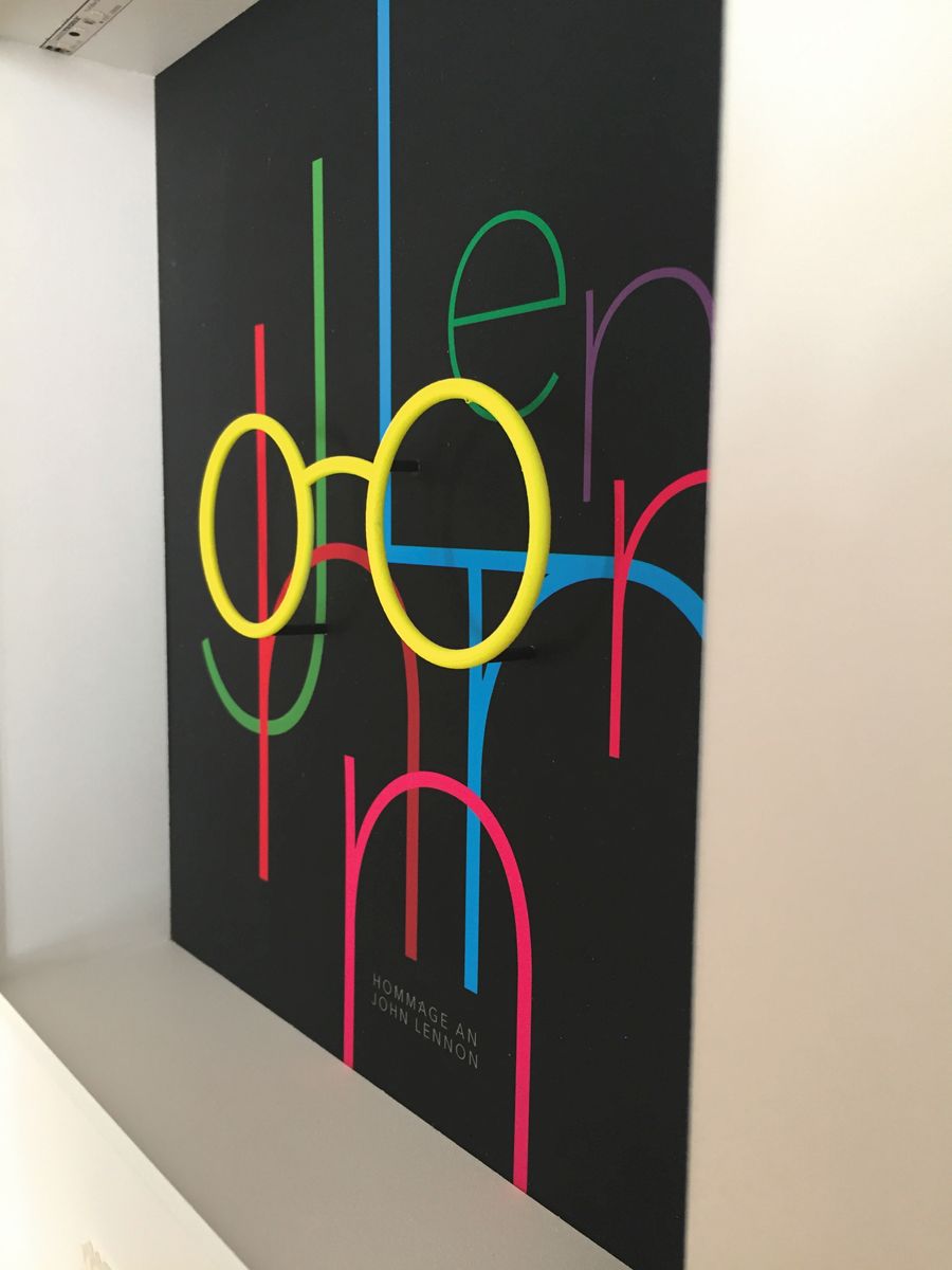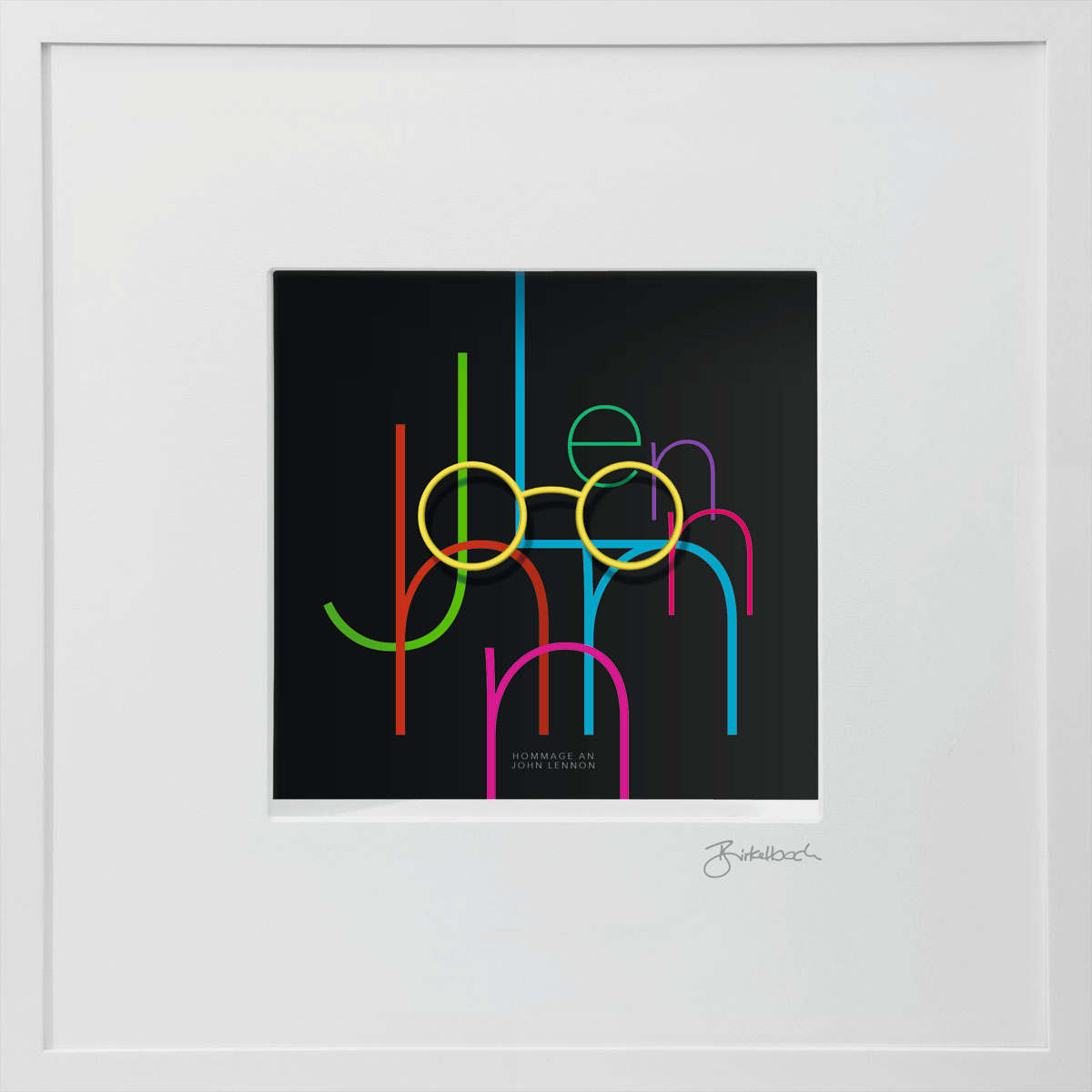 Die markante runde Brille steht stylistisch wie kein anderes Symbol für das Gründungsmitglied der Beatles. Das berühmte Lesegerät ist von dem Designer als dreidimensionale Skulptur kunstvoll mit den Buchstaben seines Namens verwoben worden. Die wiederum adressieren die bunte Farbenwelt der Flower Power-Zeit. Wandkunst für alle John Lennon-Fans.