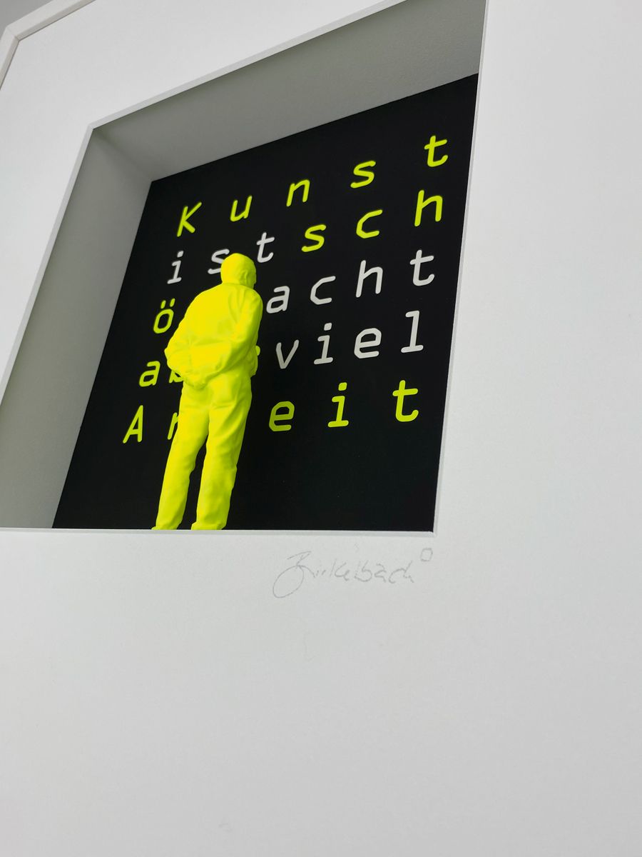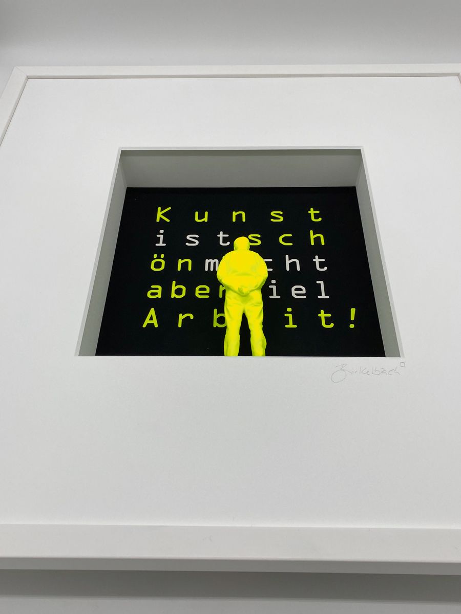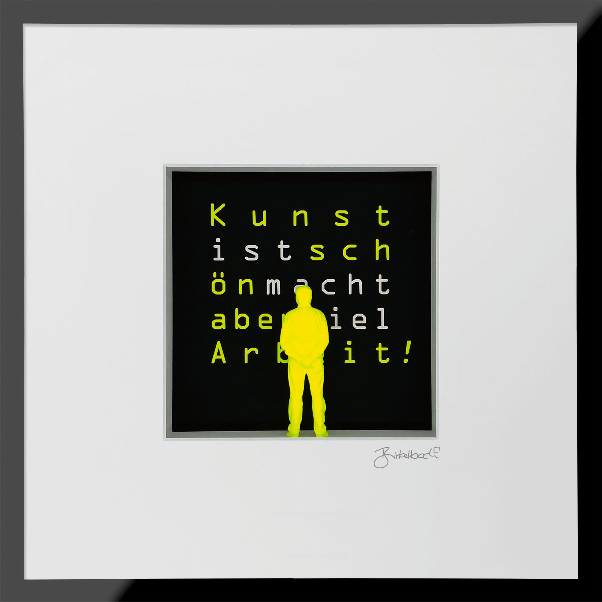 Kunst ist schön, macht aber viel Arbeit! Das erkannte auch schon der deutsche Komiker Karl Valentin. Ein typographisches Objektbild für alle, die im weitesten Sinne mit Kunst zu tun haben.
