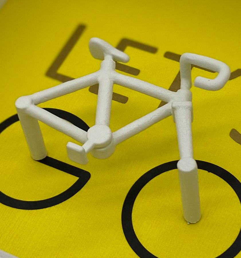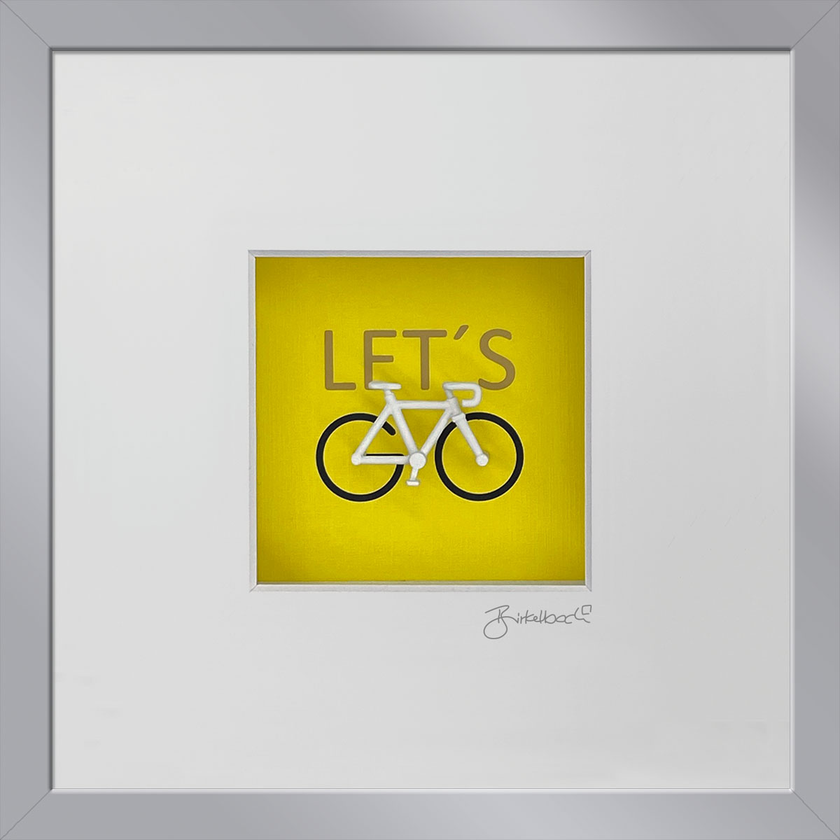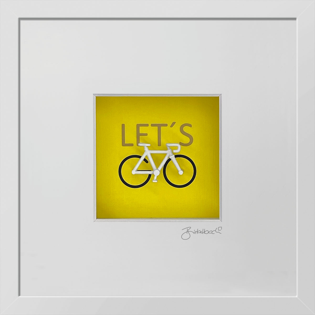 Endlich mal wieder auf das Rad steigen und los geht es! Ein Geschenk für alle RadsportlerInnen, die auch im Arbeitszimmer oder ihrem Office an diesen schönen Sport denken wollen und sollen. Der Fahrradrahmen als 3D-Element in typischem Racing-Gelb.