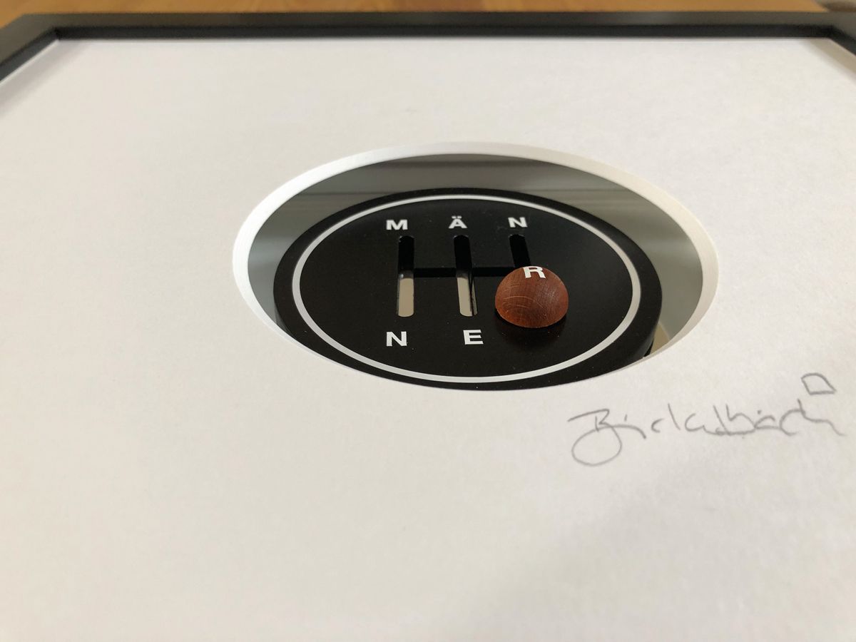 Sind Männer Machos, einfach gestrickt und doch vielleicht ganz liebenswert? Frauen, die das glauben, können ihrem Liebsten jetzt ein besonderes Geschenk machen: das männliche Geschlecht, typographisch umgesetzt als Knauf einer Autoschaltung.