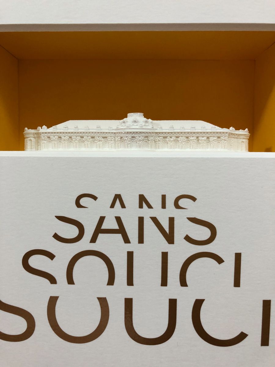 OHNE SORGEN – so wollte Friederich der Große leben und ließ das Schloss Sanssouci auf der mit Wein bepflanzten Anhöhe in Potsdam errichten. Ein schönes kleines Objektbild, in das der Celan-Gips-Abdruck eines handgeschnitzten Modells des Künstlers Alex Agwanjan eingesetzt ist. Das Geschenk für alle Potsdam-LiebhaberInnen.