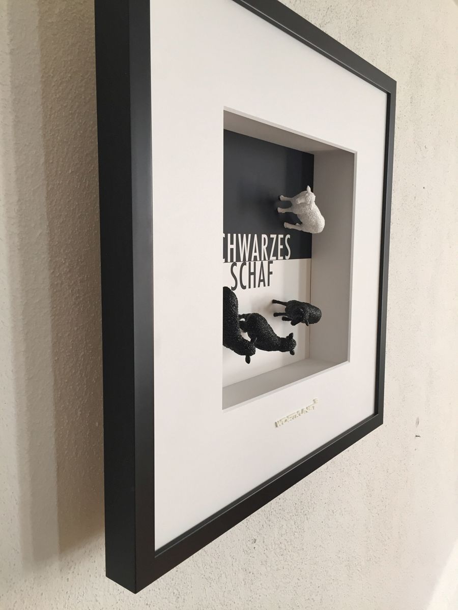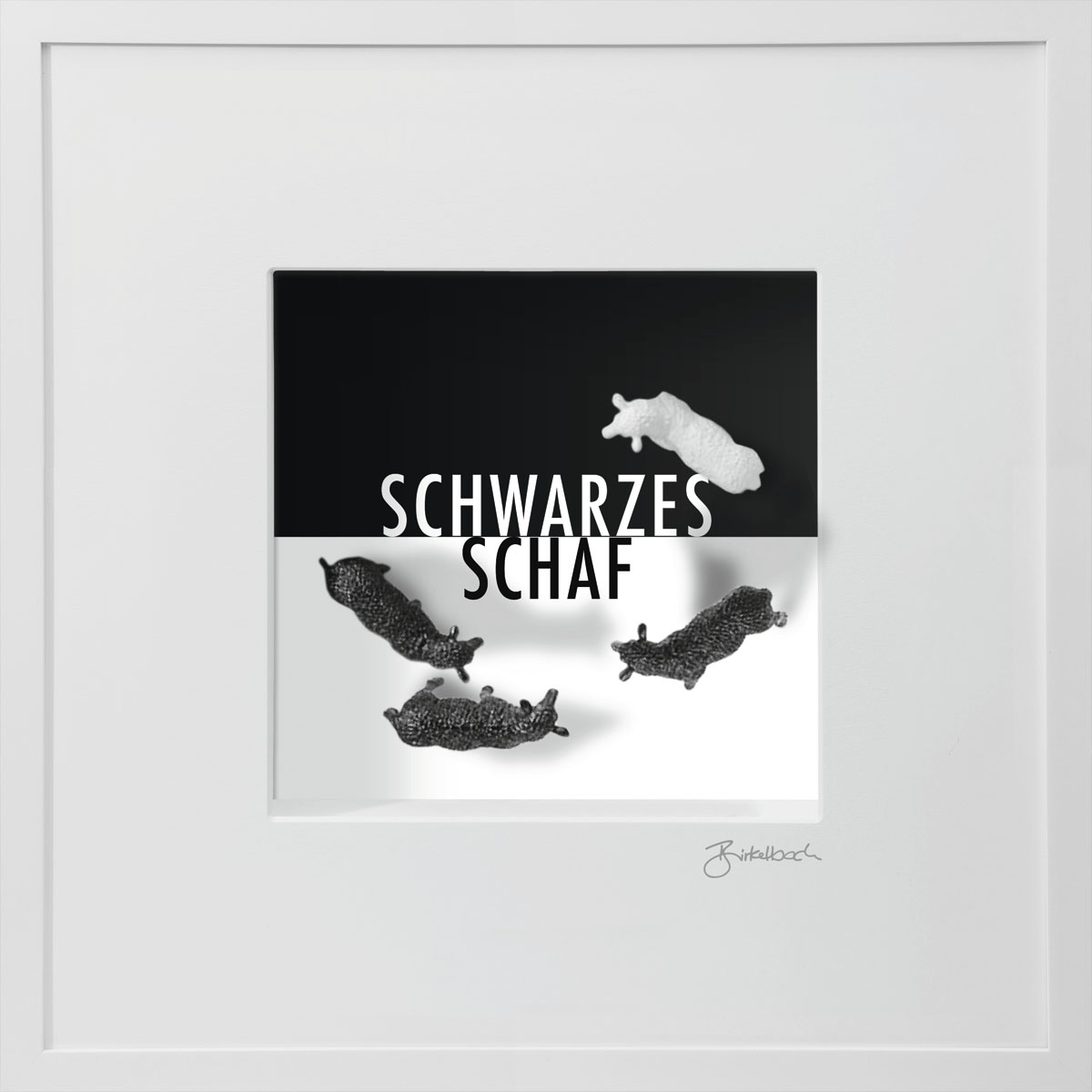 Eigentlich ist alles klar: In jeder Herde weißer Schafe gibt es immer auch den Sonderling: das schwarze Schaf. Was aber ist, wenn sich ein einzelnes weißes Schaf in einer Herde schwarzer Schafe wiederfindet? Es wird zum schwarzen Schaf. Eine beruhigende Botschaft, dass jeder von uns irgendwann auch einmal der Exot sein kann. Ein Objektbild für Individualisten.