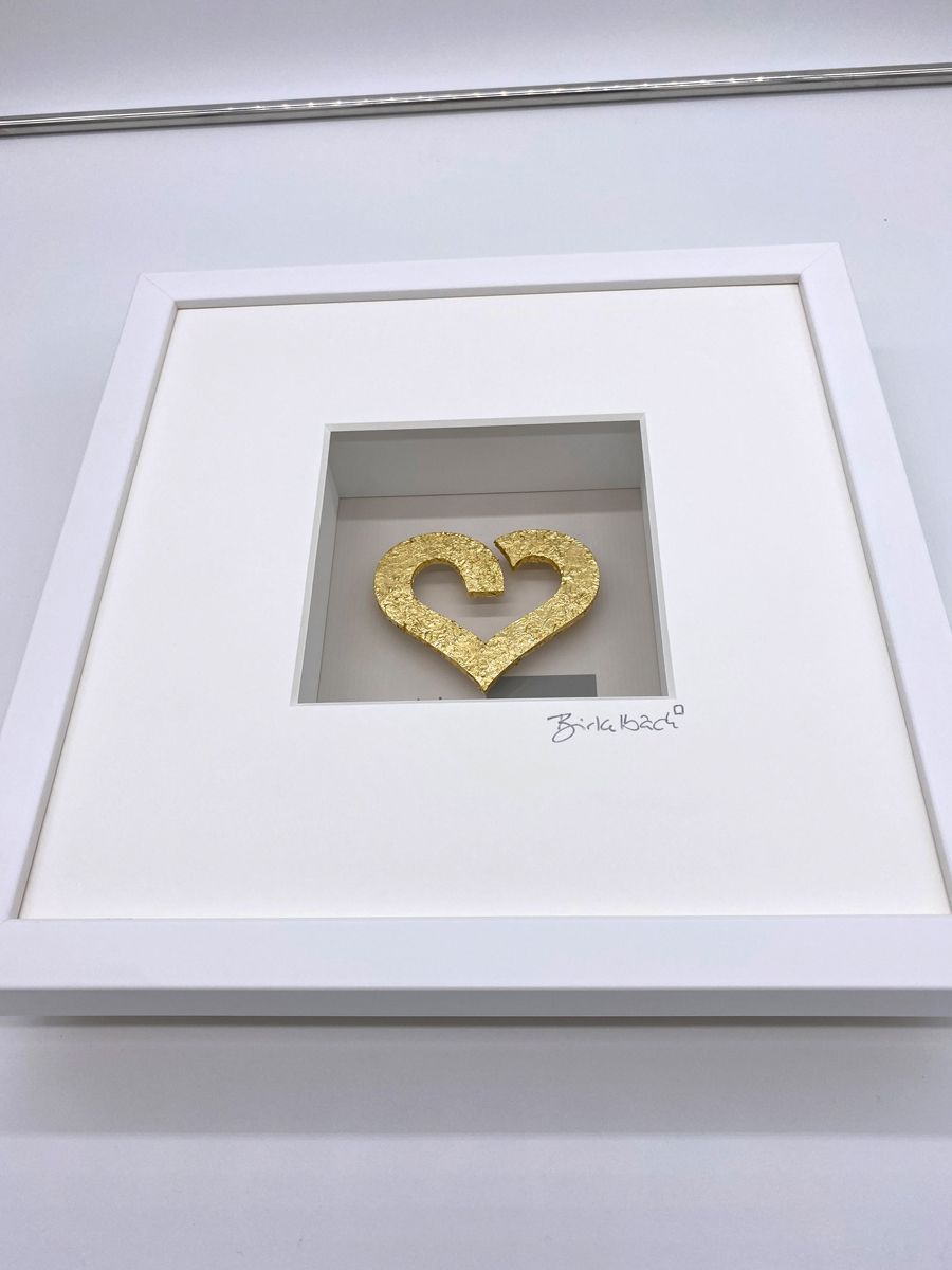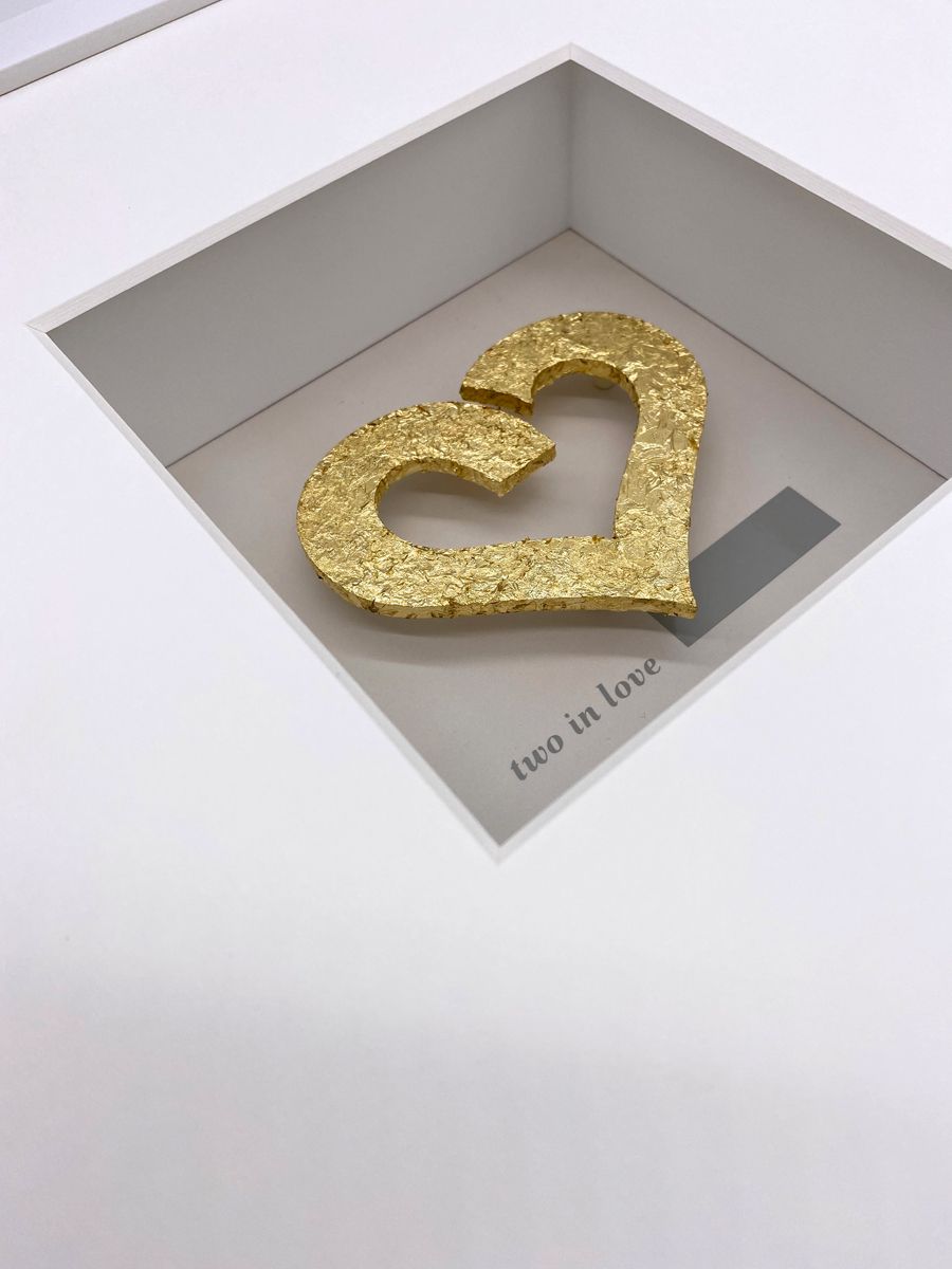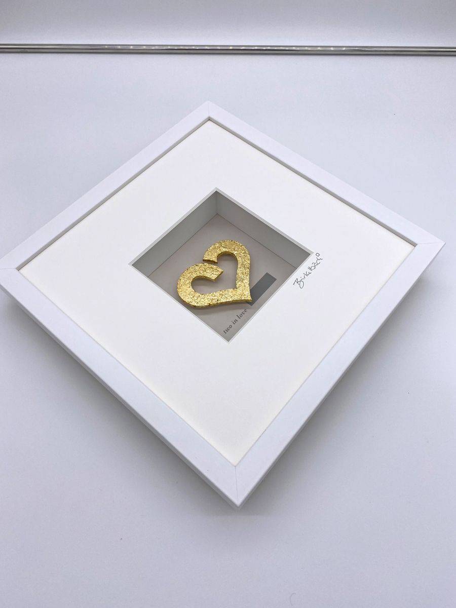 Da haben sich zwei gefunden! Kann man diese göttliche Fügung würdevoller ehren, als durch dieses wunderschöne Objektbild? Ein dreidimensional geschnittenes Herz mutiert harmonisch zu der Zahl 2. Dazu wird die Plastik aufwendig mit Blattgold überzogen. Ein modernes wie wertiges Geschenk für die Verlobung und Trauung.