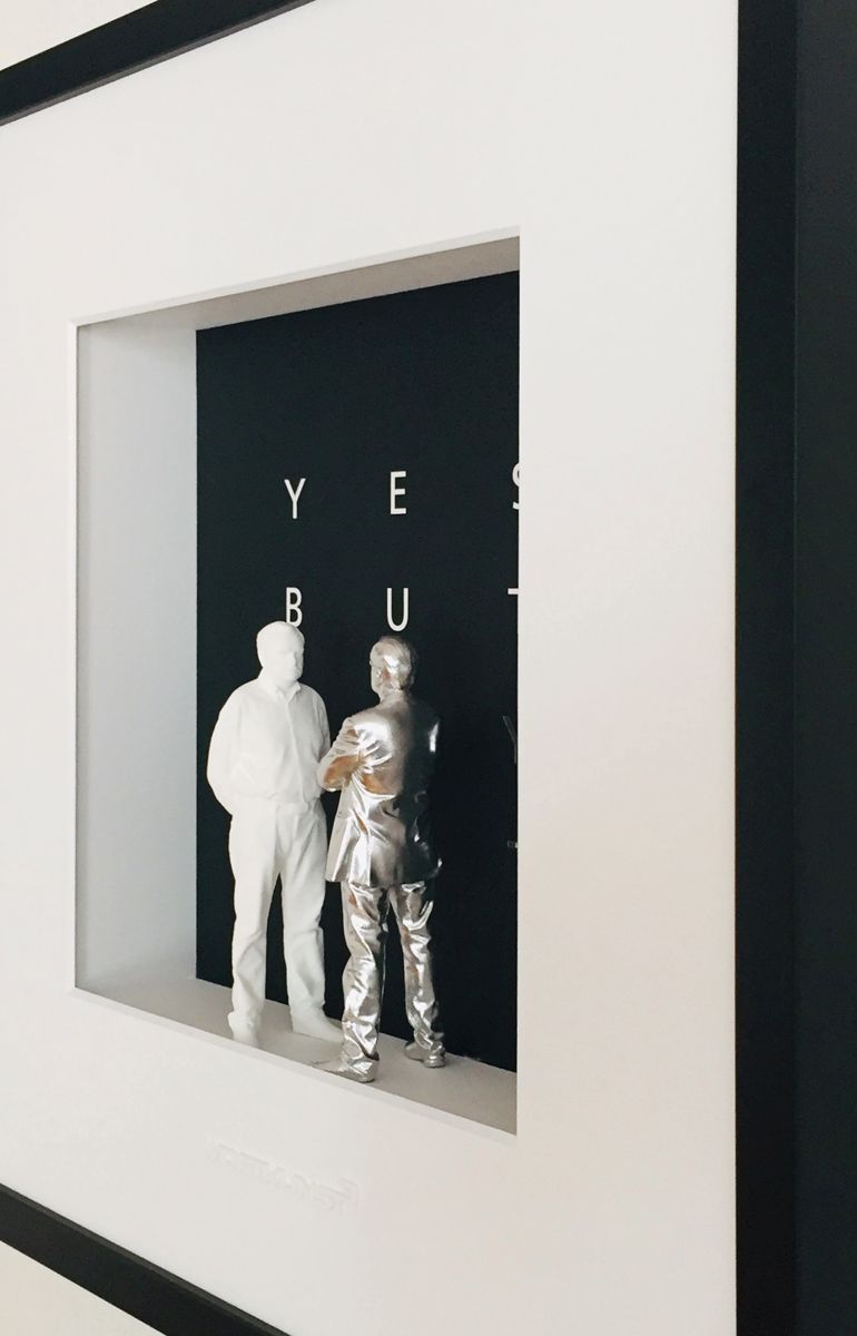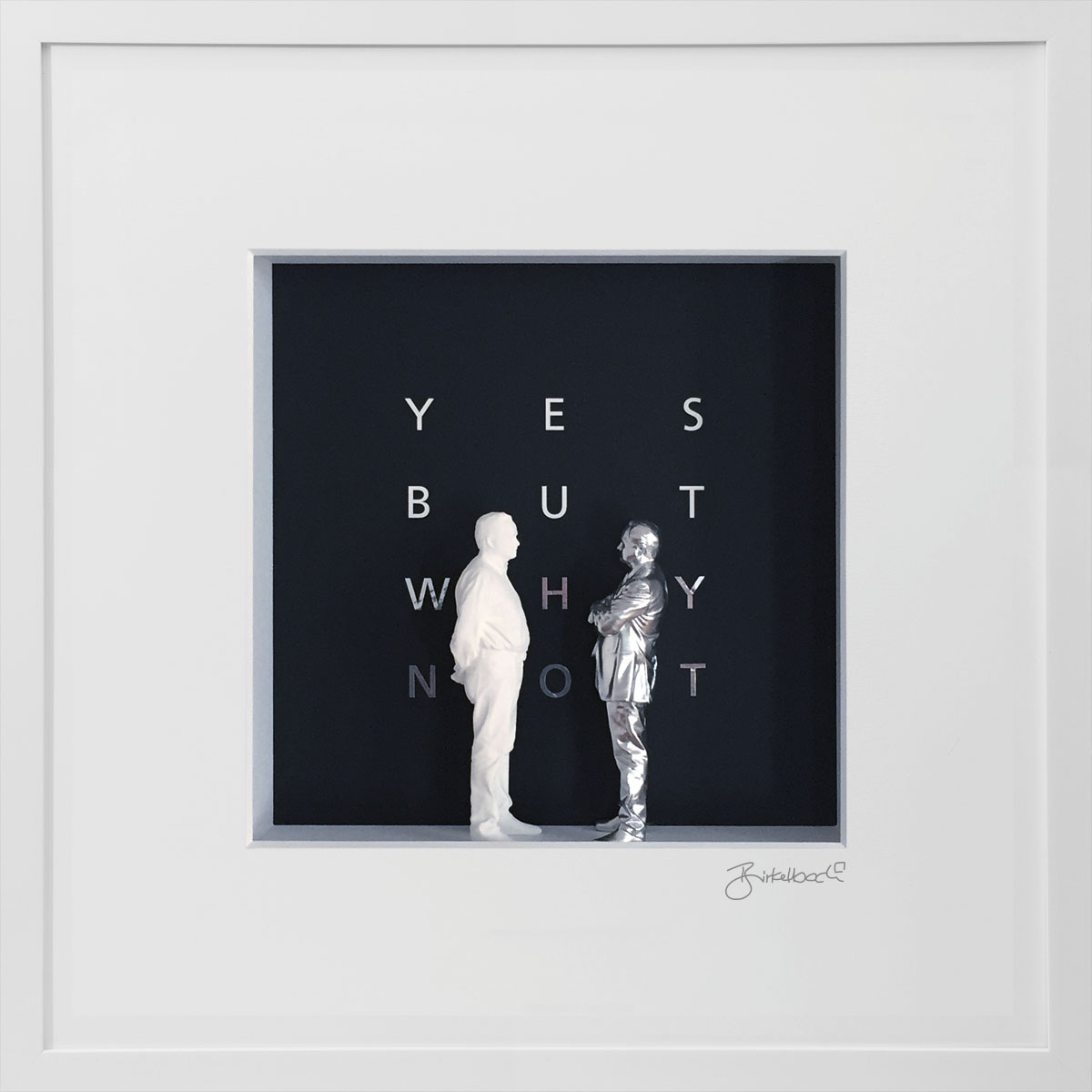 „Yes-butters kill ideas. Why-notters move companies.“ Bedenkenträger töten Ideen, Optimisten bringen Unternehmen nach vorne (Unbekannt). Eine glänzende figürliche Illustration der Diskussionen um Veränderungsprozesse in Unternehmen. Für alle, die Widerstände brechen wollen, um Neues zu schaffen, Figuren in 3D.